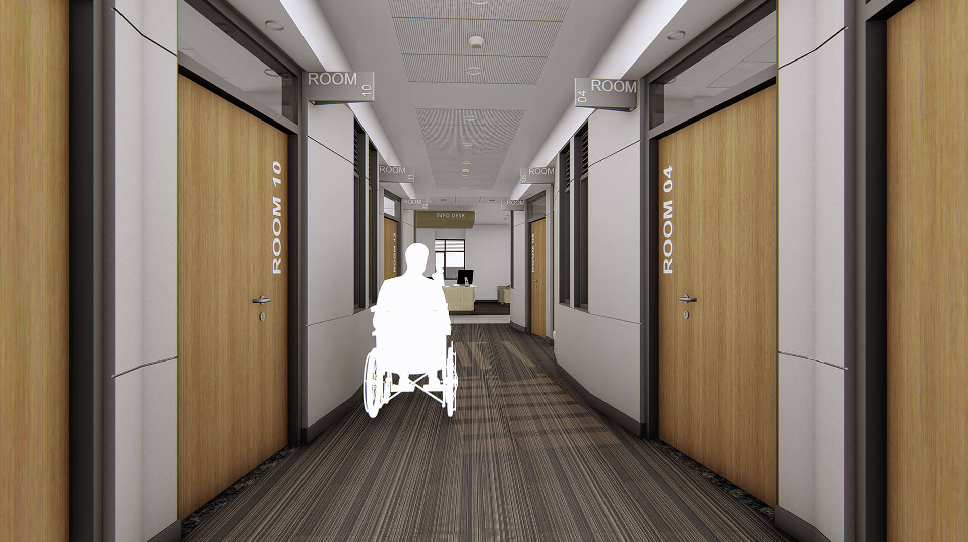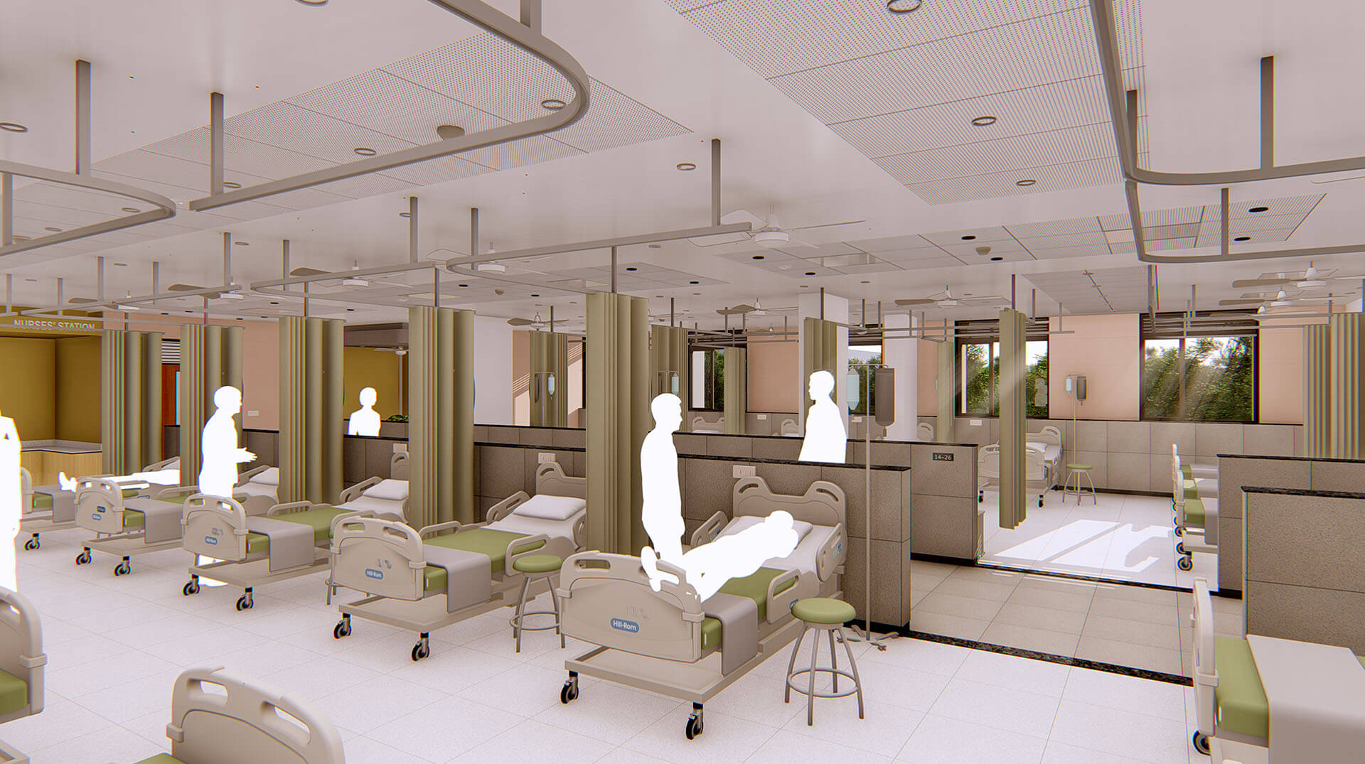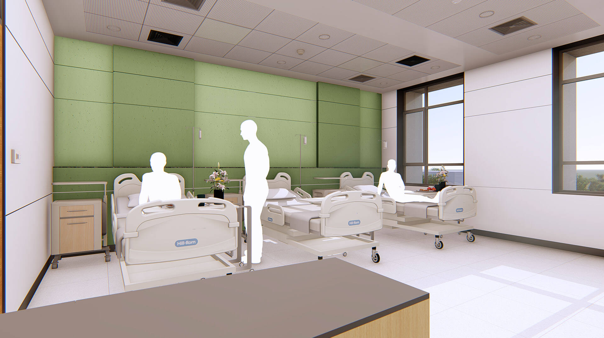 The guidelines of Evidence Based Design (EBD) are employed for developing a healing environment for patients and an efficient workspace for the healthcare staff. Each patient room is outfitted with a large window, seating area and sofa bed for the patient caretakers.