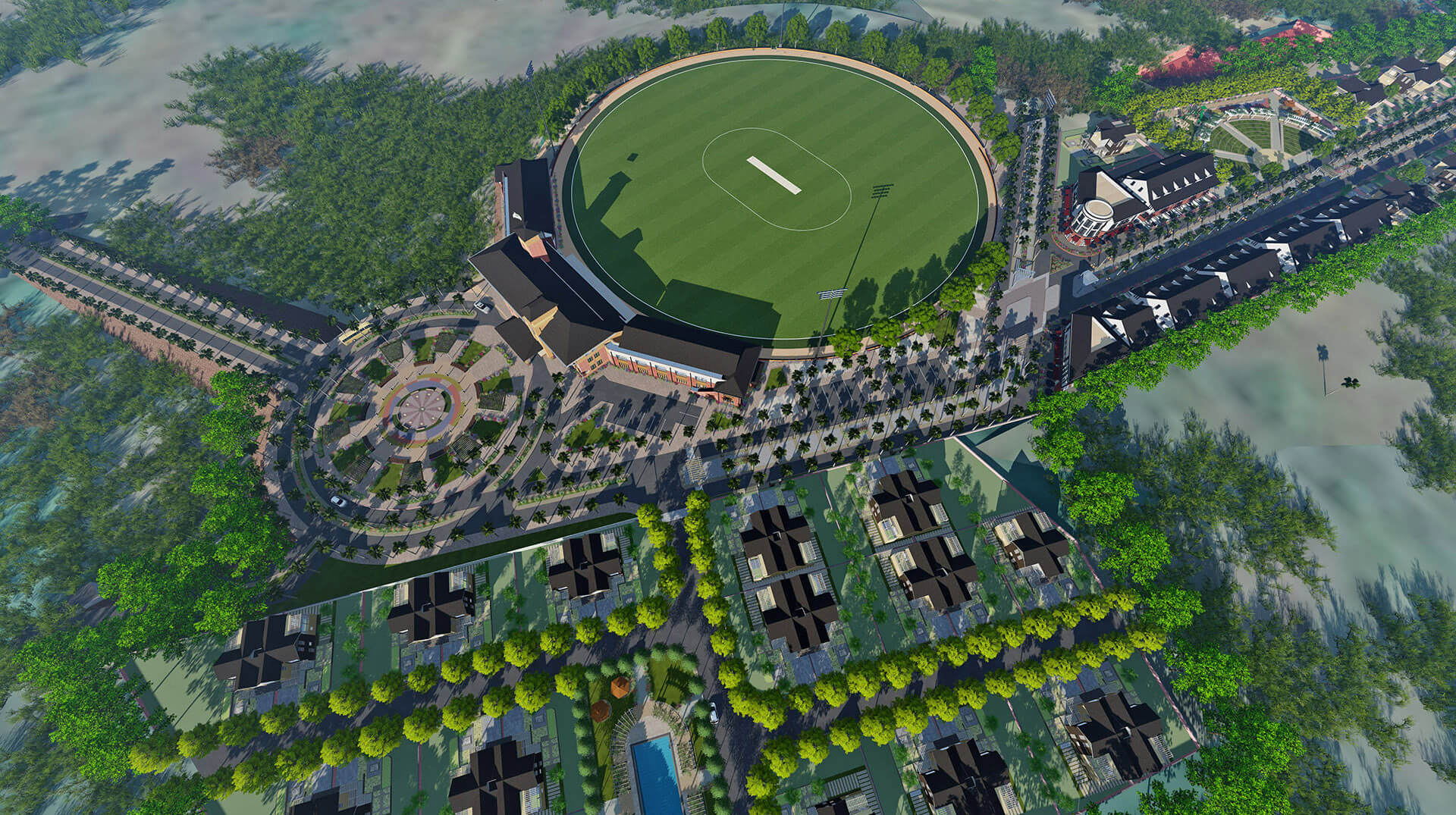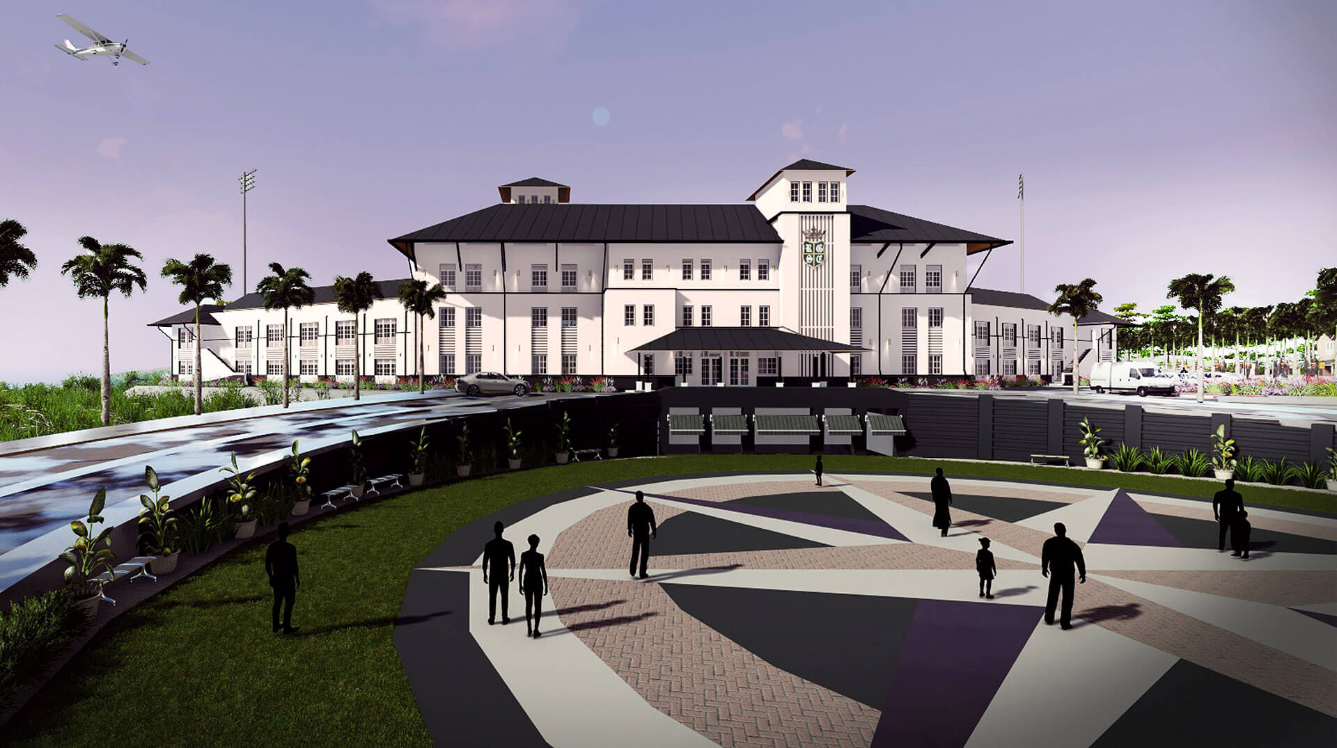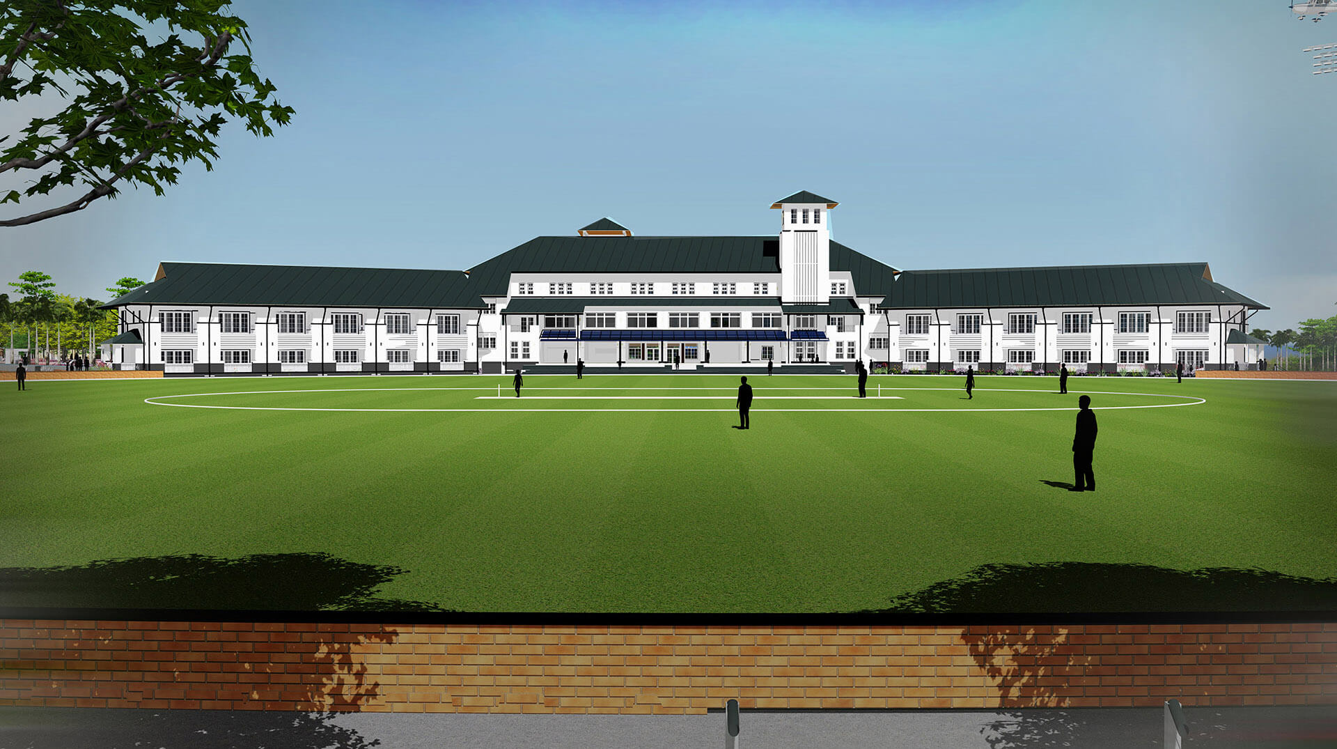 Entrance is defined by a neatly arranged row of Royal Palms and the landscaped roundabout, creating an avenue that leads to the drop off point. The building is conceived into three distinctly articulated parts. The North and South wings accommodate 24 guest rooms each, with verandahs overlooking the 70-yard cricket ground.