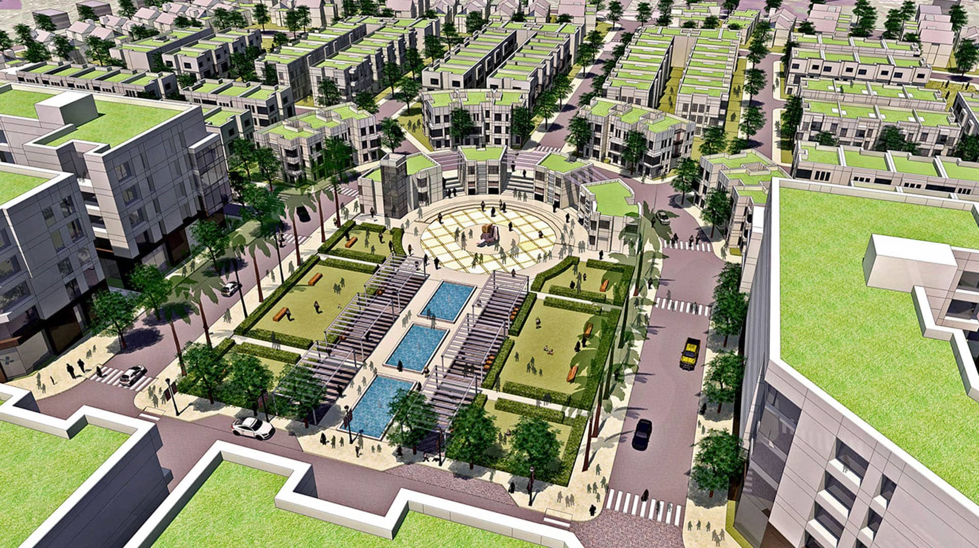 All residents will be within walking distance of their daily needs, where the heart of the community lies in The “Town Center” with its urban plaza, due to strategic planning of a series of activities such as malls, offices and outdoor cafes around it. Sited as anchors are two public parks with a library & school that provide access to civic places of relaxation and enjoyment.